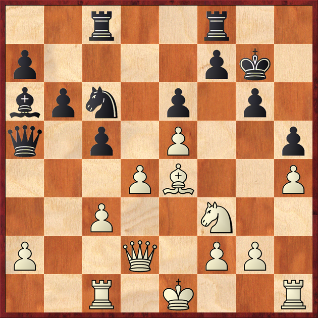 17.Bxa3 Rxa3 18.f5 Nc7 19.e4 d4 20.Qxd4 c5 21.Qd1 Nxe5
