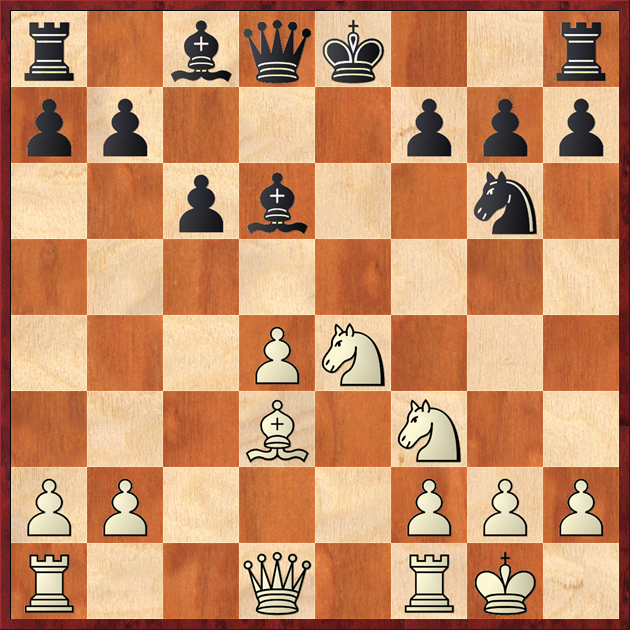 Here I considered 13.Nxd6+ Qxd6 14.Re1+ и 13. d5 and coudn't remember which move was good and which was bad. In the game there continued 13. d5, and it seemed it couldn't be too bad.