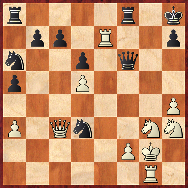 White conducts the advance with exceptional force. The fate of the black king depends on whether the reserves will come to his aid in time—the a8 rook and the a6 knight.