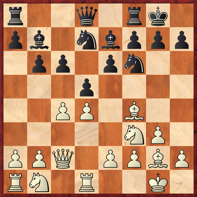 A responsible choice, although 10 years ago it was found in the games of a few famous chess players. Opening the center with a “sealed” queenside looks risky. Now black prefers the solid 11...Rc8.