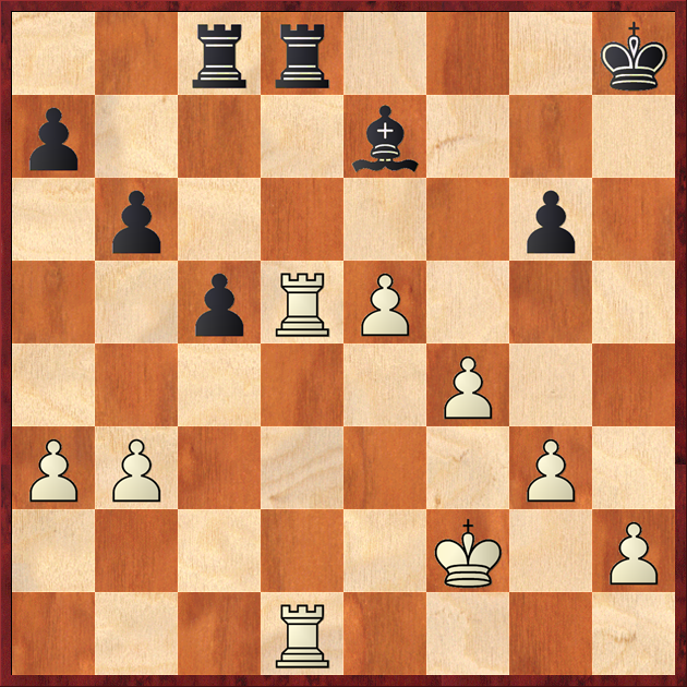 30.Rxd8+ Rxd8 31.Rxd8+ Bxd8 32.Ke3 Bb6 33.Kd3 Kg7 34.g4 Kf7 35.h4 Ke6 36.Ke4 c4 37.bxc4 bxc4 38.f5+ gxf5+ 39.gxf5+ Ke7 40.h5
