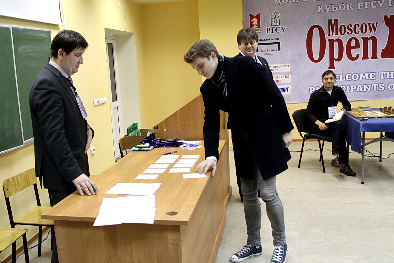 Жеребьевка мужского и женского турниров студентов-гроссмейстеров состоялась сегодня вечером в РГСУ. Церемонию провели директор Кубка РГСУ Moscow Open Александр Костьев и главные арбитры соревнований – международные арбитры Артем Ахметов (Россия) и Юрген Мюллер (Германия). Помимо карточек с номерами участники получали сувенирные наборы от Сбербанка России.