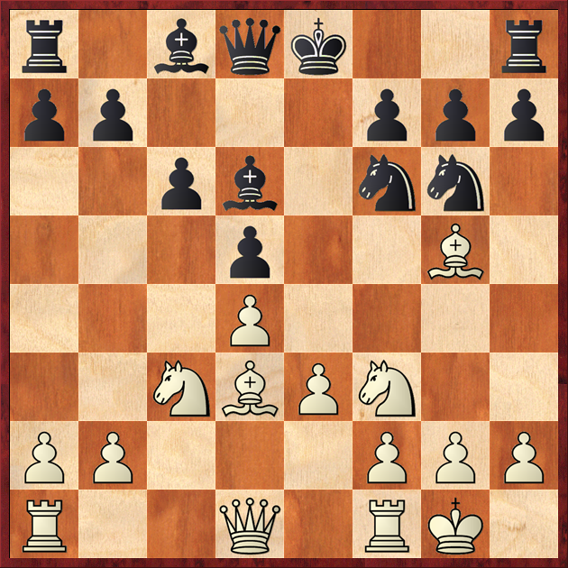 Критический момент. Мне казалось, что если я не бью на f7, то перевеса у меня нет. Обычно я пытаюсь такие позиции оценить логически, и поэтому я считал, что должно проходить 16. Bxf7+, потому что иначе у черных было бы все совсем комфортно. Поэтому по логике, если у меня другого хода нет, - жертва проходит.